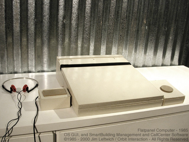 The flatpanel display was designed to articulate for user-optimized viewing angle. This feature is seen as a working bellows in the foamcore model. The display was also hinged to the CPU, and could be locked upright or down (via simple detents). The computer was to automatically go into sleep mode when the screen was down. |
